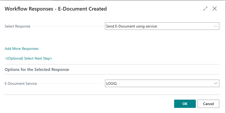 The E-Document Service defines how Business Central communicates with Logiq.