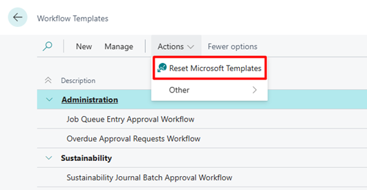 If you do not see the E-documents workflow template, go to Workflow Templates page and select action Reset Microsoft Templates.